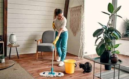 We clean bedrooms, bathrooms, kitchen, living room, etc. We vacuum & clean the floor. We dust, wipe & wash.